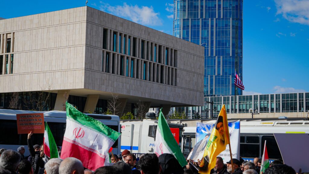 İran Dini Lideri Ayetullah Ali Hamaney İsrail-ABD ortak saldırısında hayatını kaybetmesinin ardından İran’ın Ankara Büyükelçiliği’nde bayraklar yarıya indirildi. Ayrıca ABD’nin